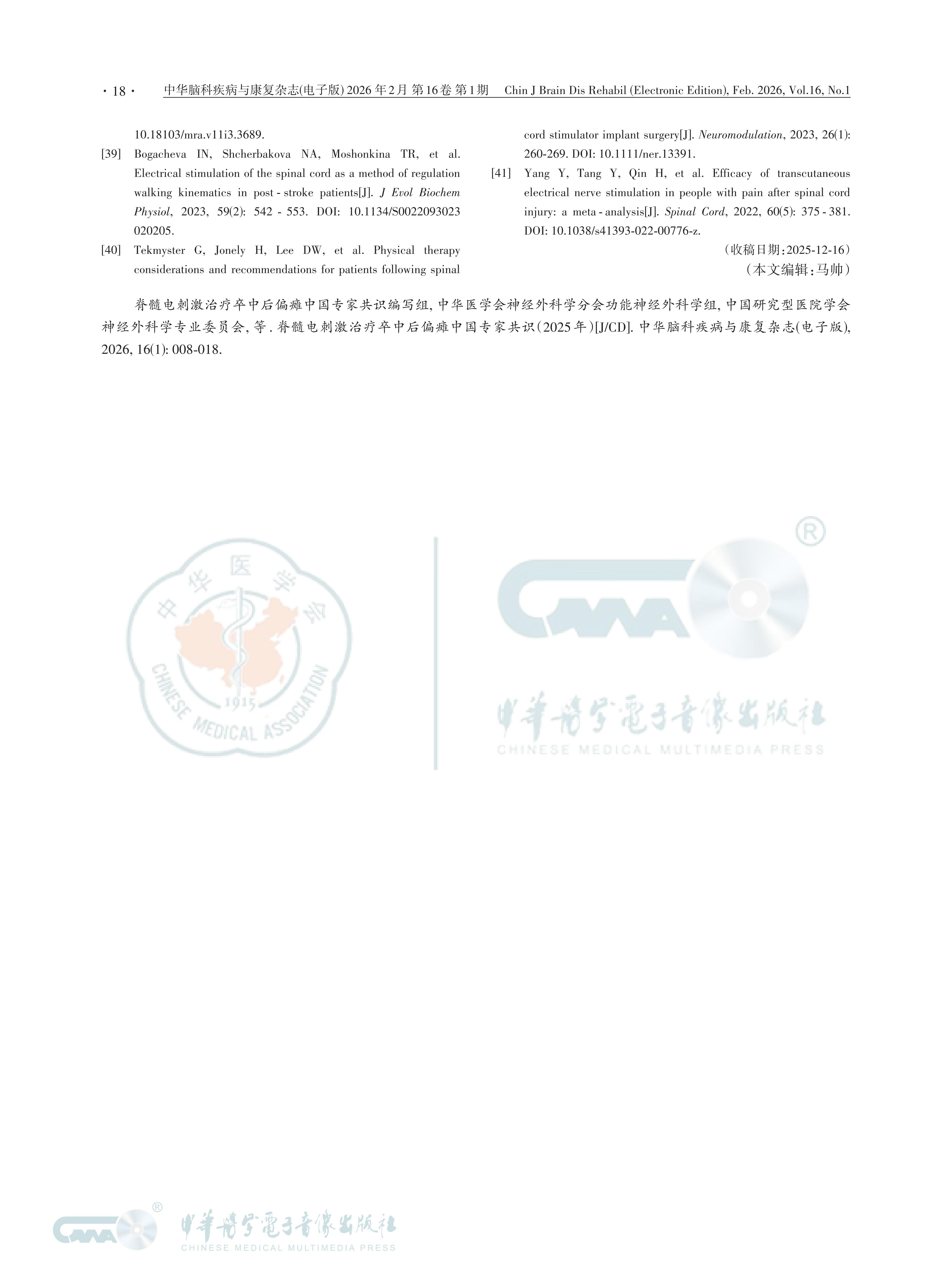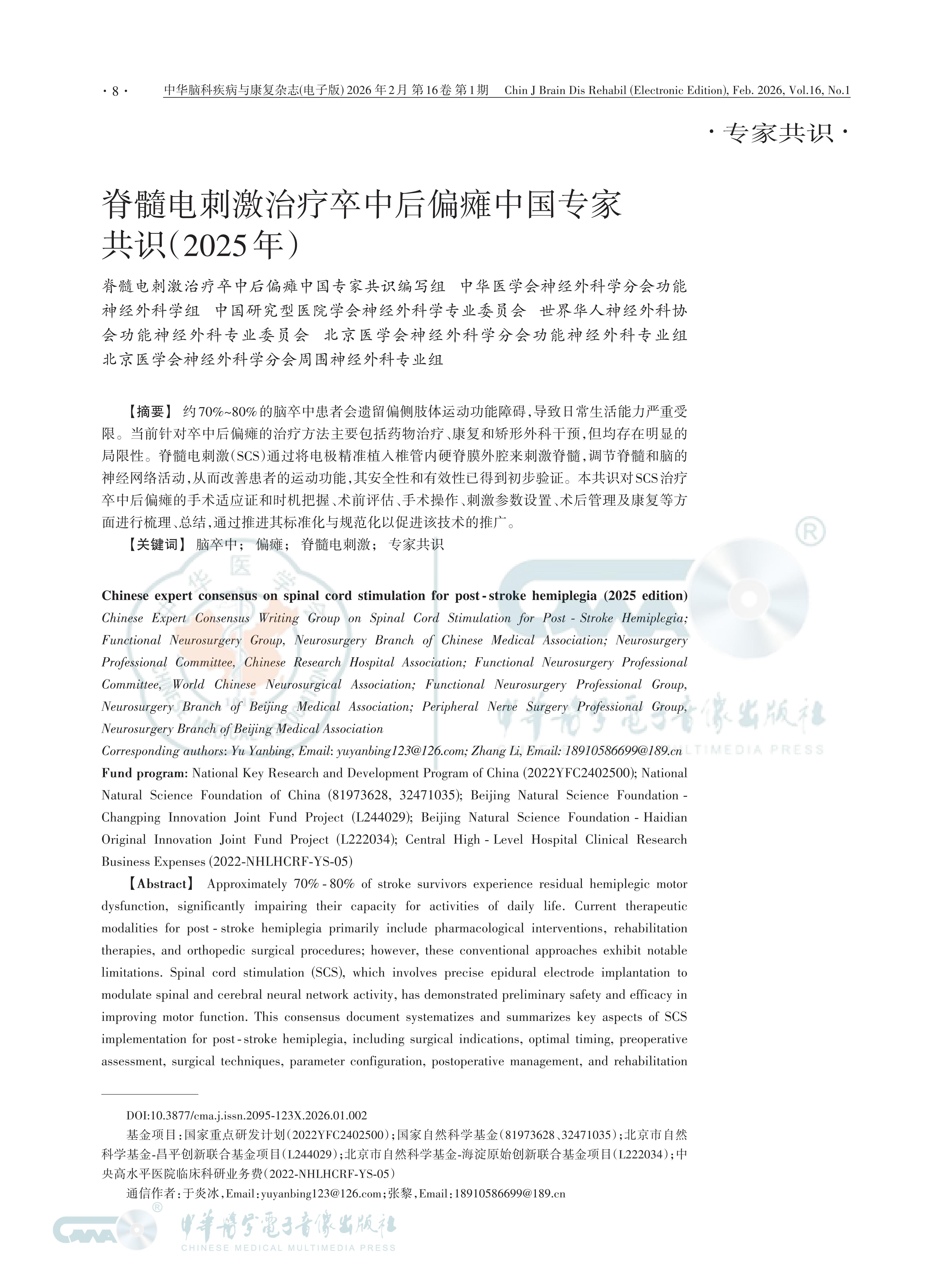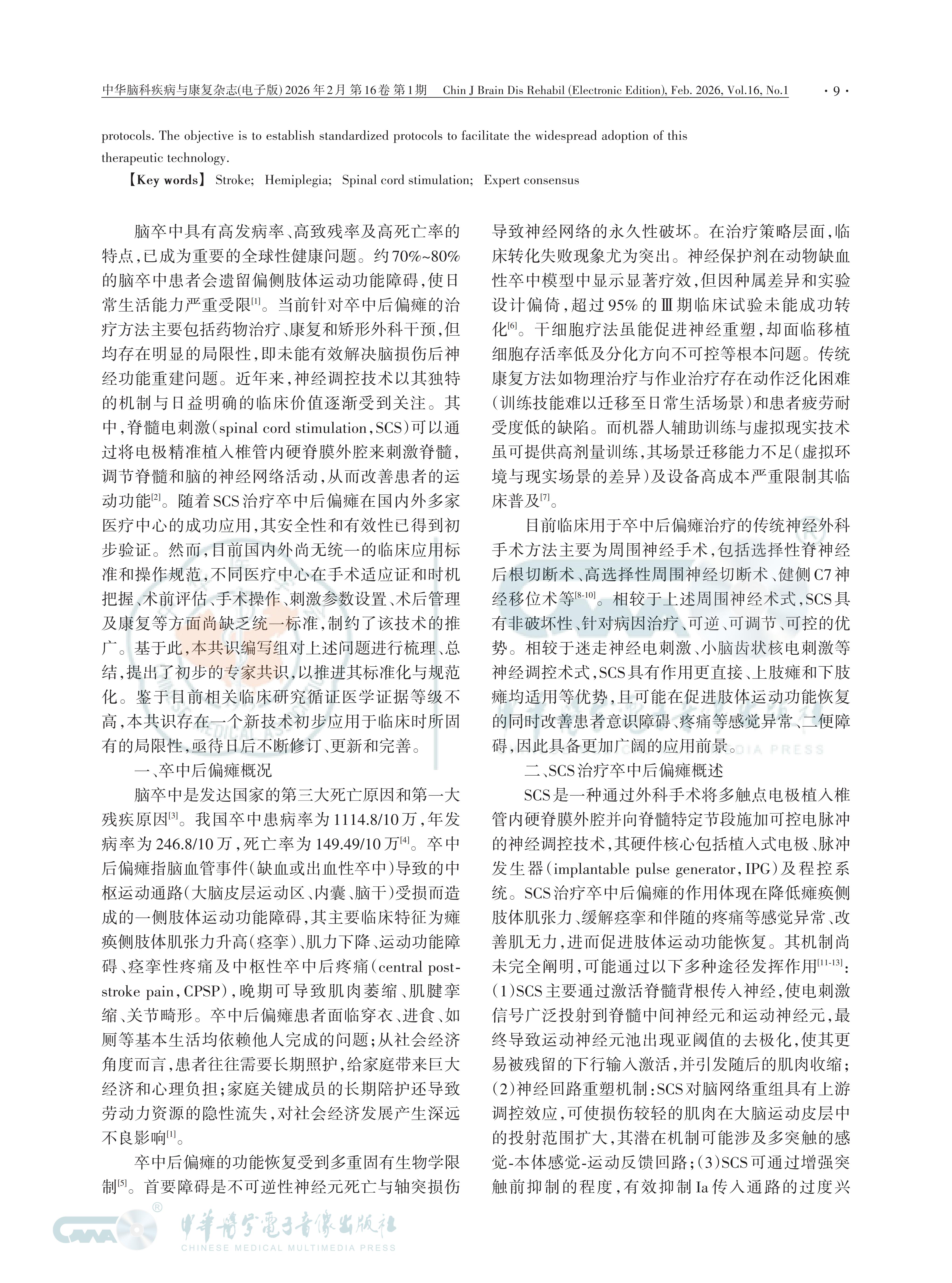 脊髓电刺激治疗卒中后偏瘫中国专家共识(2025年)